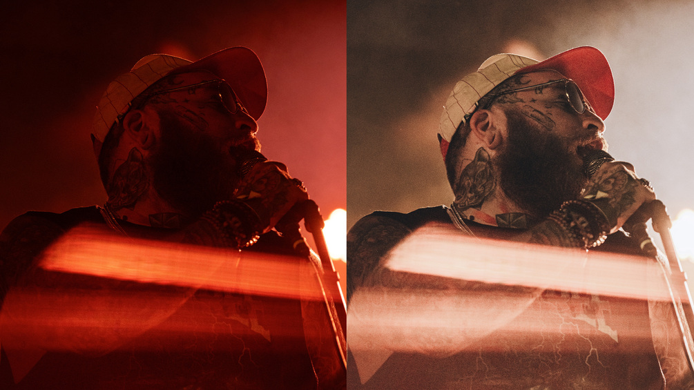 Use any of the presets and properly make refinements to your white balance + exposure to fine tune your image. Every concert will have different amounts of lights and different hues interacting, so it's important to nail these basic adjustments.